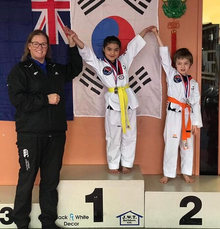 By 2002 Master Camille had found a TKD club in Napier, “Bay City” originally founded by recently deceased Master Barry Hawkins. Finally, able to sit her Black Belt with Instructor and 3rd Dan Max Robb and Master Porter, Instructor Max was leaving for a new job so Master Camille took over the Bay City Club and brought it back to Hastings. In 2004 (now 2nd Dan) they started at Mahora school. Robby now 4 years old, being her youngest student (he had no choice) Master Camille grew the club from 6 students to 86 in a year and so had to move on to bigger full-time premises.