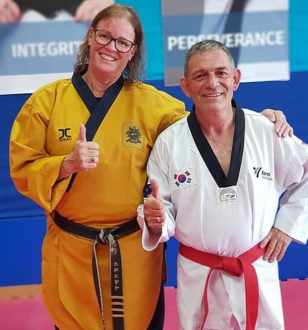 In 1983 Master Camille started her Taekwondo journey at the age of 23; a young single mum who needed a change in her direction. Master Camille noticed an ad for ladies self defence class at Havelock North Primary School so she gathered up a couple of buddies and off they went. Master Camille was the one who stayed and completed the course. The instructor, a 4th Dan ITF Master George Follis, was impressed and asked her to stay on and learn the art of ITF Taekwondo. Five years and getting ready for her Black Belt. Master Camille had a lot of changes and another baby on the way. Whilst pregnant Master Camille took on the role of teaching the younger kids and loved it. In the meantime, the club closed and M Follis moved to Auckland.