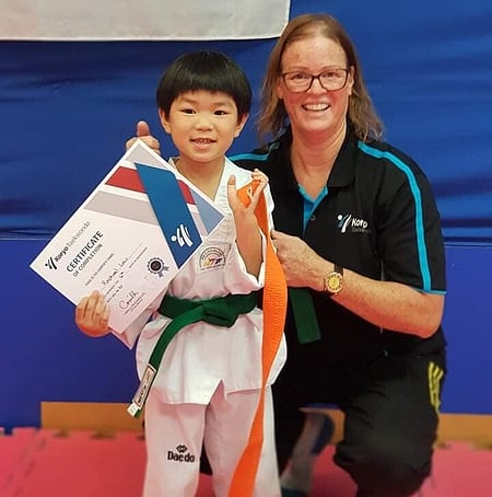 By 2002 Master Camille had found a TKD club in Napier, “Bay City” originally founded by recently deceased Master Barry Hawkins. Finally, able to sit her Black Belt with Instructor and 3rd Dan Max Robb and Master Porter, Instructor Max was leaving for a new job so Master Camille took over the Bay City Club and brought it back to Hastings. In 2004 (now 2nd Dan) they started at Mahora school. Robby now 4 years old, being her youngest student (he had no choice) Master Camille grew the club from 6 students to 86 in a year and so had to move on to bigger full-time premises.